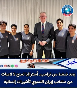 الرئيسية/الرياضة/بعد ضغط من ترامب.. أستراليا تمنح 5 لاعبات من منتخب إيران النسوي تأشيرات إنسانية الرئيسية بعد ضغط من ترامب.. أستراليا تمنح 5 لاعبات من منتخب إيران النسوي تأشيرات إنسانية admnمارس 10, 20260 31 أقل من دقيقة admnمارس 10, 20260 31 أقل من دقيقة واتساب مشاركة عبر البريد طباعة