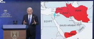 نتـ ـنياهو يخرج بمؤتمر صحفي ويضع إيران والعراق وسوريا واليمن ولبنان ضمن اللون الأحمر في إشارة إلى أنهم ضمن بنك الأهداف #قناة_العالمية_نيوز_24