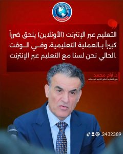 صرح د. آرام محمد، وزير التعليم العالي والبحث العلمي في اقليم كوردستان بأنهم في الوقت الحالي لسوا مع اتباع نظام التعليم عبر الإنترنت (الأونلاين) في جامعات ومعاهد الإقليم، وذلك لأن هذا الأسلوب يلحق ضرراً كبيراً بالعملية التعليمية. وأكد وزير التعليم العالي أن التعليم عبر الإنترنت سيكون الخيار الإجباري الأخير الذي قد يتم التفكير فيه.